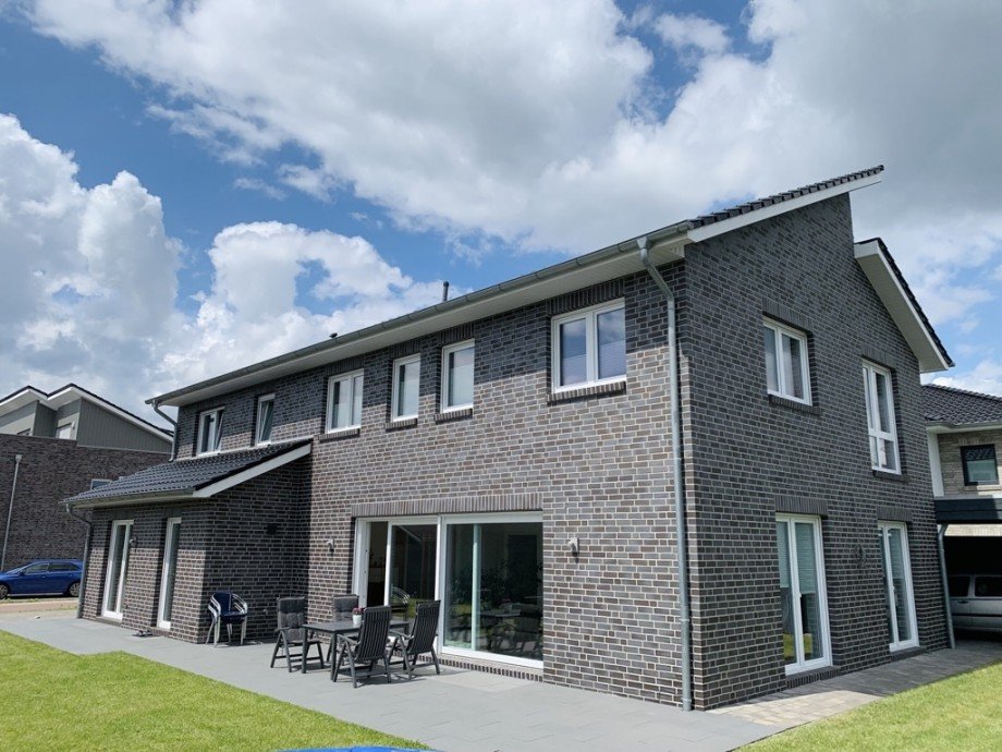 Das Einfamilienhaus wurde im Jahr 2017 errichtet und befindet sich in einem neuwertigen Zustand. Es zeichnet sich durch eine gute Ausstattung und eine gelungene Aufteilung aus. Die Wohnfläche erstreckt sich über zwei Etagen und bietet ausreichend Platz für eine Familie. Im Erdgeschoss befindet sich ein großzügiger Wohnbereich, der viel Tageslicht durch die bodentiefen Fenster erhält.